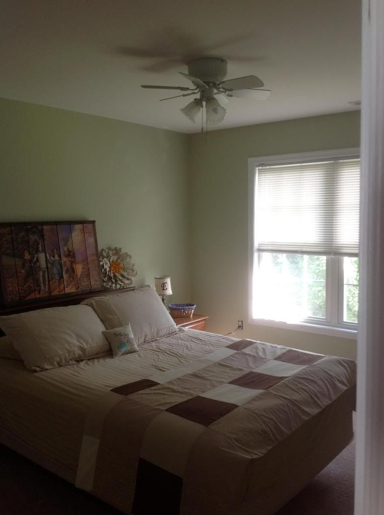 The second guest room was quite bright so they went for a much more neutral to go with any color scheme. The new color is Revere Pewter