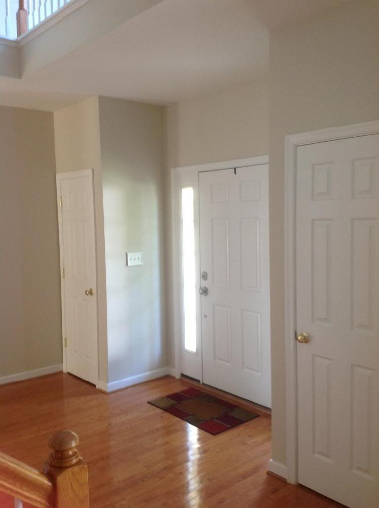 Good friends of ours just bought their first home together! We were so excited for them to start their new marriage in a new home. While they loved their new home, their new home was less than satisfactory in their eyes as far as color. It was in need of a face-lift and personality overhaul. So we started right away trying to capture the right homey feelings with some new colors! (All Benjamin Moore)